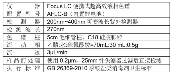 氯化芐銨松寧(又名芐索氯銨,CAS#: 121-54-0)是一種氯型季銨鹽類(lèi)的低毒高效消毒劑。參考《GB 26369-2010 季銨鹽類(lèi)消毒劑衛(wèi)生標(biāo)準(zhǔn)》,應(yīng)用于不同場(chǎng)景的消毒使用,對(duì)氯化芐銨松寧的濃度及作用時(shí)間有明確要求,因此現(xiàn)場(chǎng)檢測(cè)并確認(rèn)氯化芐銨松寧的含量是十分必要的。