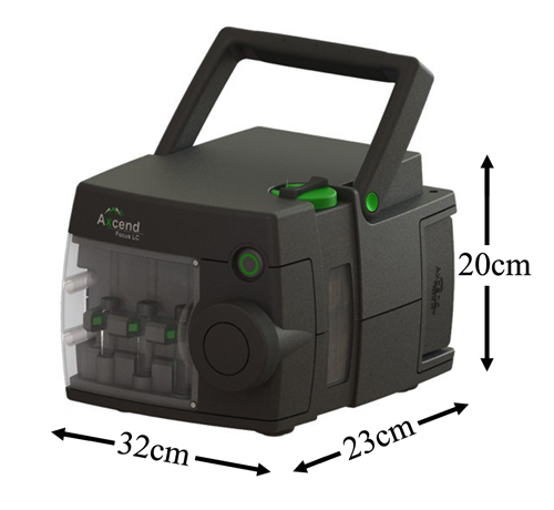 美國(guó)Axcend公司Focus LC便攜式超高效液相色譜儀,專(zhuān)為現(xiàn)場(chǎng)快速檢測(cè)而設(shè)計(jì),可供操作者隨手掌控。儀器體積如鞋盒般小巧,凈重不足8kg,續(xù)航時(shí)間長(zhǎng),流動(dòng)相消耗少,靈敏度高,模塊化的檢測(cè)器設(shè)計(jì)使操作和維護(hù)都非常方便。